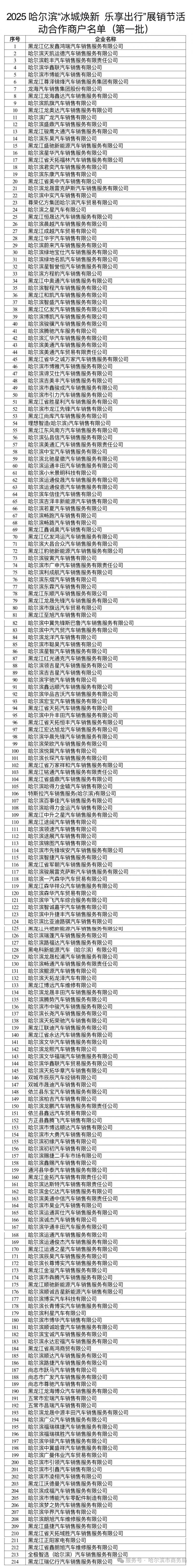 相关活动详情,请关注哈尔滨市商务局微信公众号“2025哈尔滨“冰城焕新 乐享出行”展销节购车优惠补贴资金发放细则”。