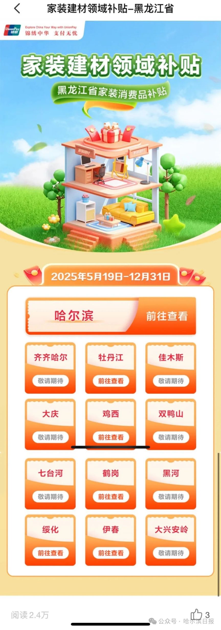 2025年哈尔滨家装建材消费补贴政策可能包含以下内容: