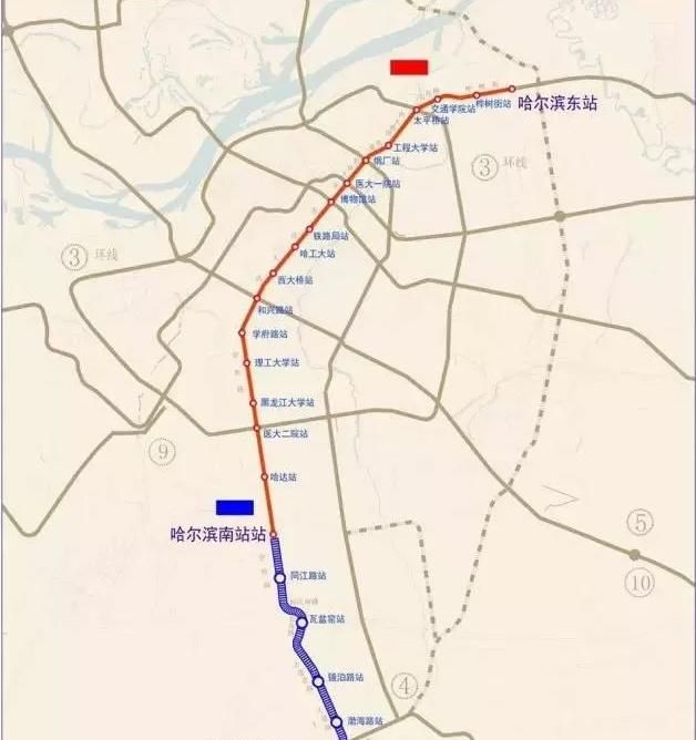 哈尔滨地铁1号线三期工程预计年底(2018年)通车运行,地铁1号线三期工程:北起哈南站,沿学府路、同江南路、大连北路,南至新疆大街,全长8.54公里,共设5座车站。
