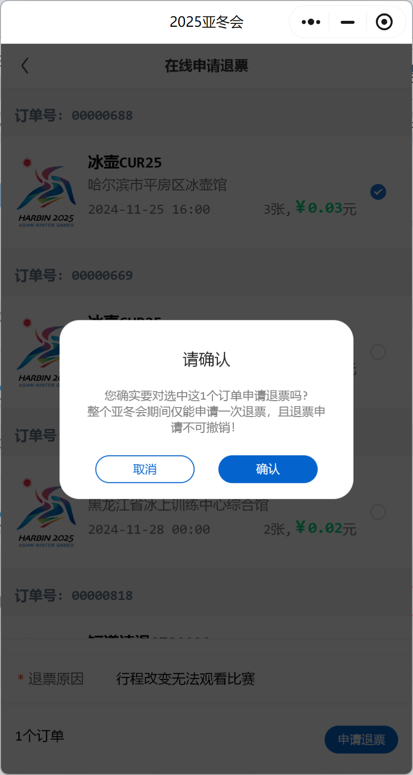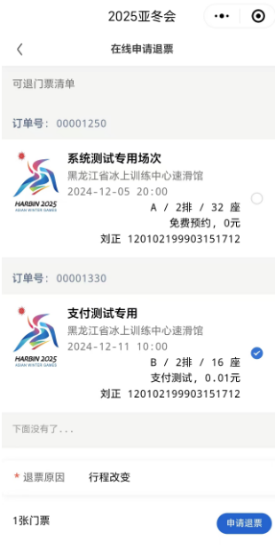 (3)在系统弹窗提示中点击确定后退票申请提交完成;