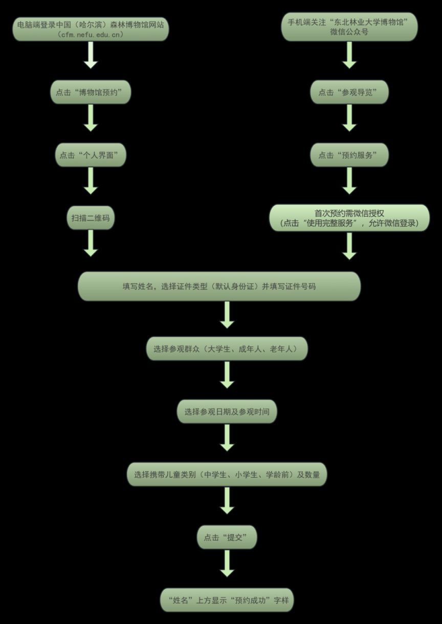 为迎接第九届哈尔滨“亚冬会”,助力黑龙江冬季冰雪旅游“百日行动”,寒假期间,东北林业大学中国(哈尔滨)森林博物馆自1月13日起调整为每周三、四、五、六、日面向社会公众免费开放,实行实名免费预约和入馆必检参观制,每周一9:00准时开放预约系统,个人可提前预约本周内的号源。预约成功后,凭本人有效身份证、预约二维码核验入馆参观。同一身份证号码同一天内可预约一次,入馆核验后预约失效(出馆后不能再进入)。